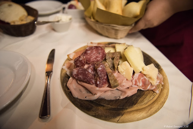 Plates and heaps of food did just that, just kept coming. Stracchino, a creamy cheese with square pillows of dough like sopapilla. Two kinds of tortellini, Bologna's specialty, cured meats, cheese, antipasti, salad.